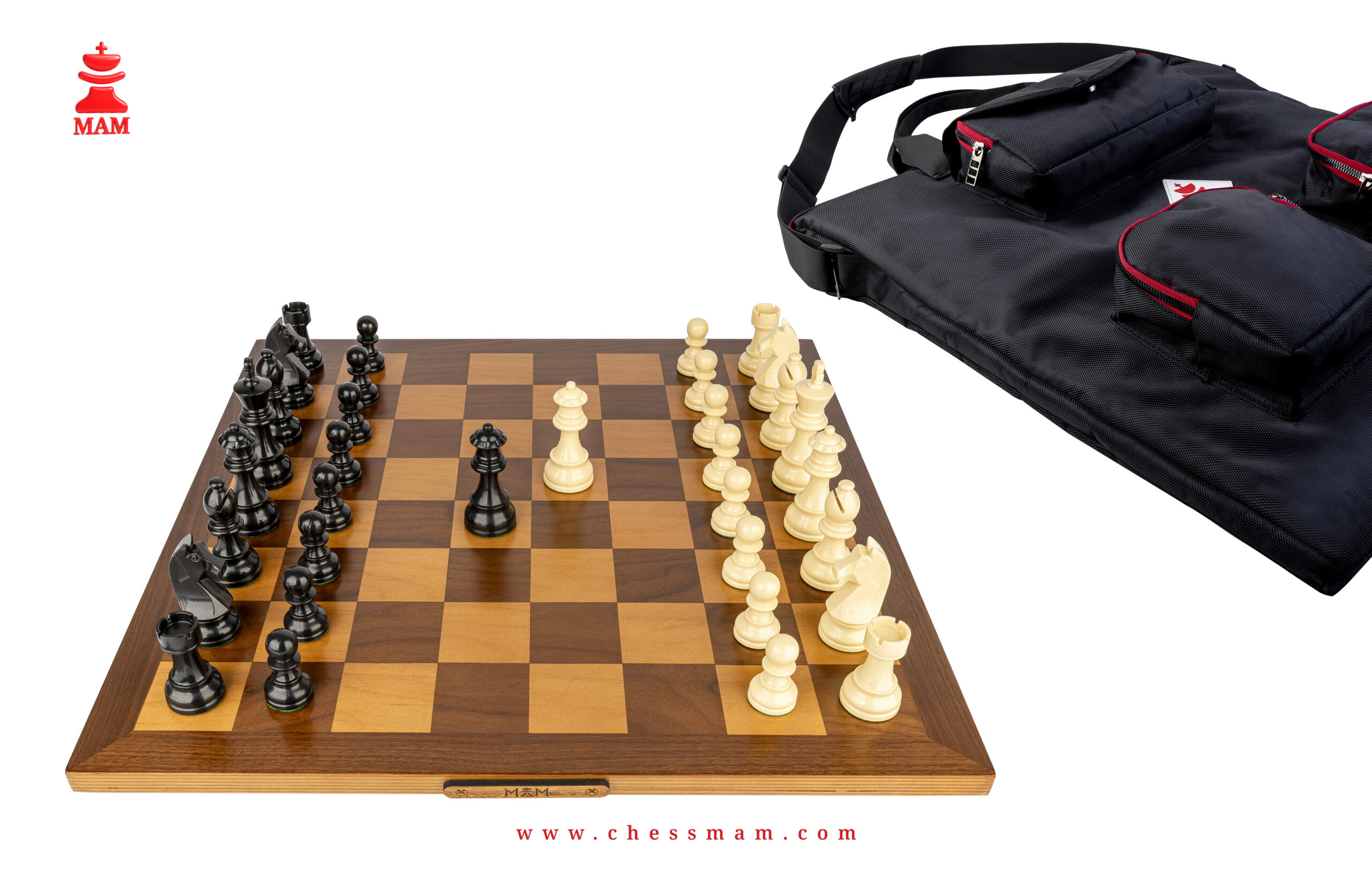 – A luxury waterproof chess bag, padded with thick layer of foam to protect your valuable wooden board, pieces and timer. A red silky soft lining to protect wooden board from any scratches, has 4 pockets, one for light pieces, one for dark pieces, one for timer and the last for the wooden board, it has a handle and a shoulder strap so no worry to have your valuable package everywhere you go. It’s 51 cm x 51 cm for board 50 cm only.