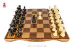 – A luxury fascinating tournament size wooden board 50cm x 50cm, inner square 5.5cm from Finn wood and natural Veneer wood(Walnut and Maple ) and Oak wood in back with 4 felt corner to make board stable, perfectly handmade crafted with an extremely soft surface like glass to have fun while sliding the pieces over.