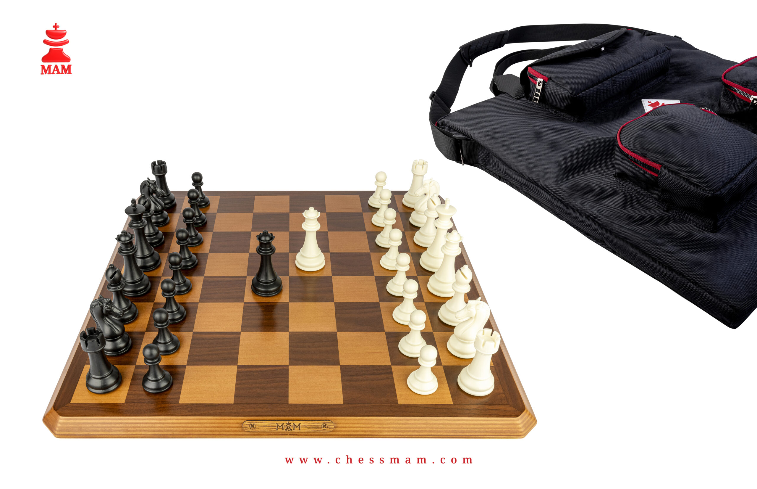 – A luxury waterproof chess bag, padded with thick layer of foam to protect your valuable wooden board, pieces and timer. A red silky soft lining to protect wooden board from any scratches, has 4 pockets, one for light pieces, one for dark pieces, one for timer and the last for the wooden board, it has a handle and a shoulder strap so no worry to have your valuable package everywhere you go. It’s 51 cm x 51 cm for board 50 cm only.