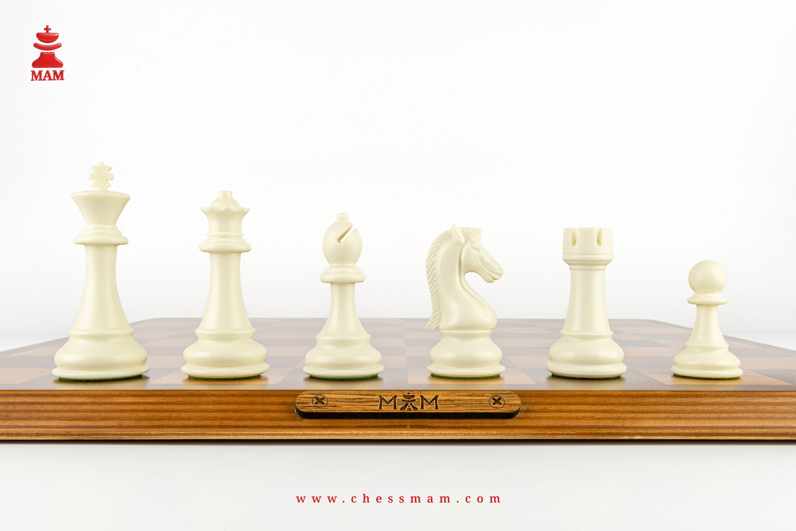 – A luxury tournament size acrylic ,for durability , it’s really WOW ) pieces 3.75 inch (9.5 cm, King size) , non-breakable, has a green soft base felt for a smooth sliding over the board and it comes with two extra queens for promotion.