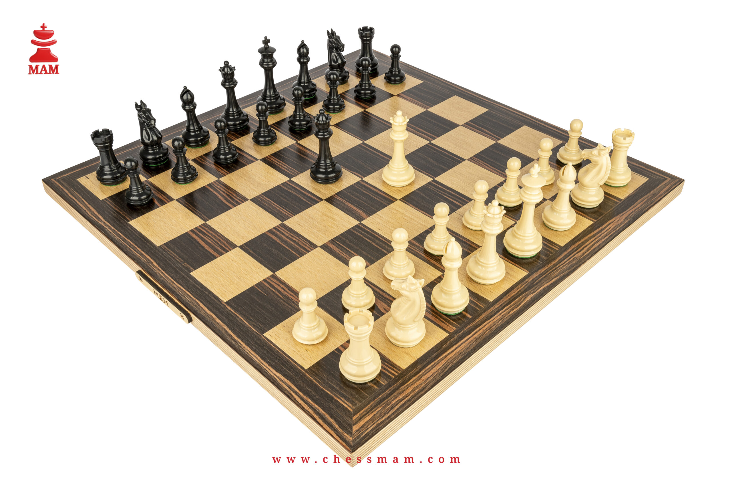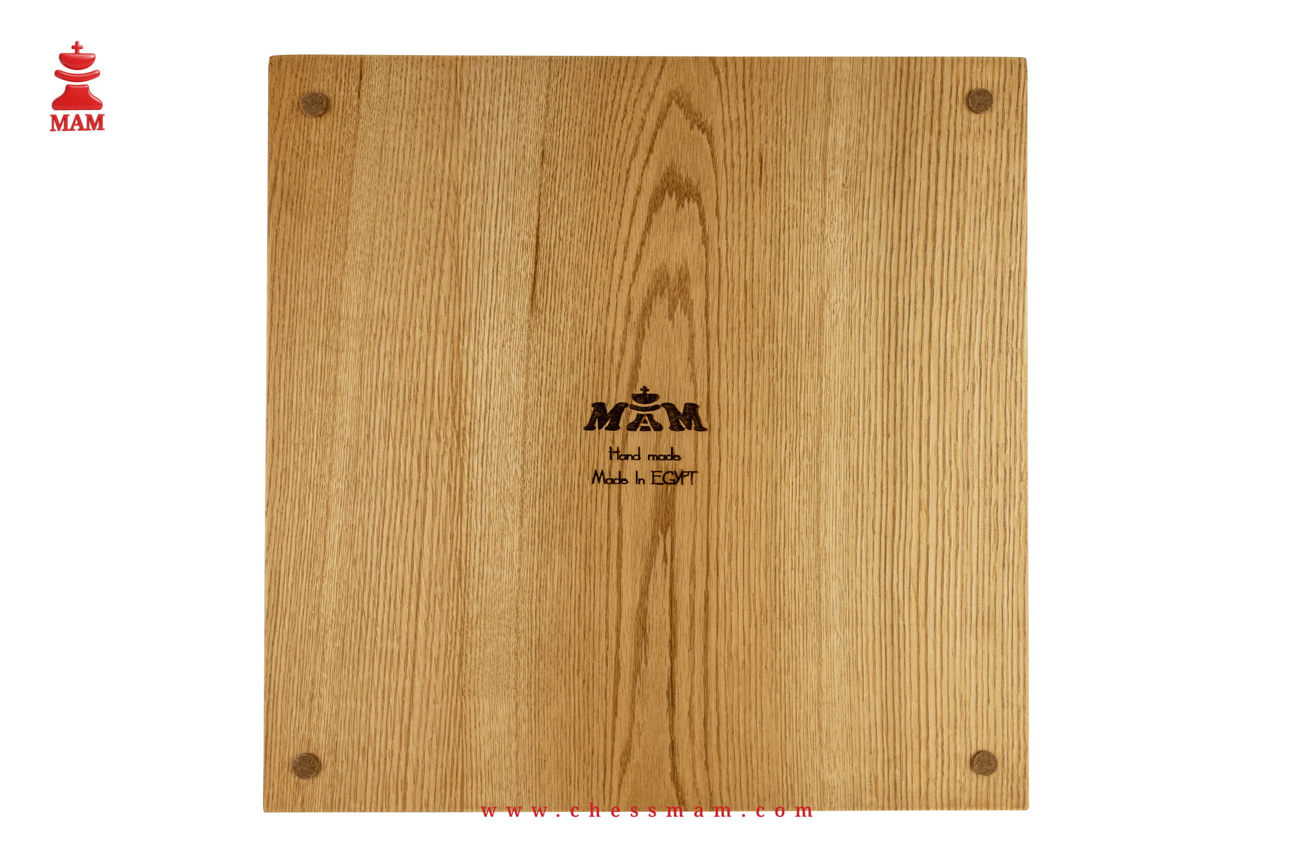 A luxury fascinating tournament size wooden board 50cm x 50cm, inner square 5.5cm from Finn wood and natural Veneer wood(Ebony and Maple ) and Oak wood in back with 4 felt corner to make board stable, perfectly handmade crafted with an extremely soft surface like glass to have fun while sliding the pieces over.